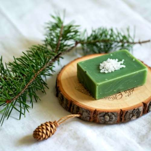 A refreshing handmade soap with mint and pine essential oils that gently cleanses, cools, and energizes the skin.